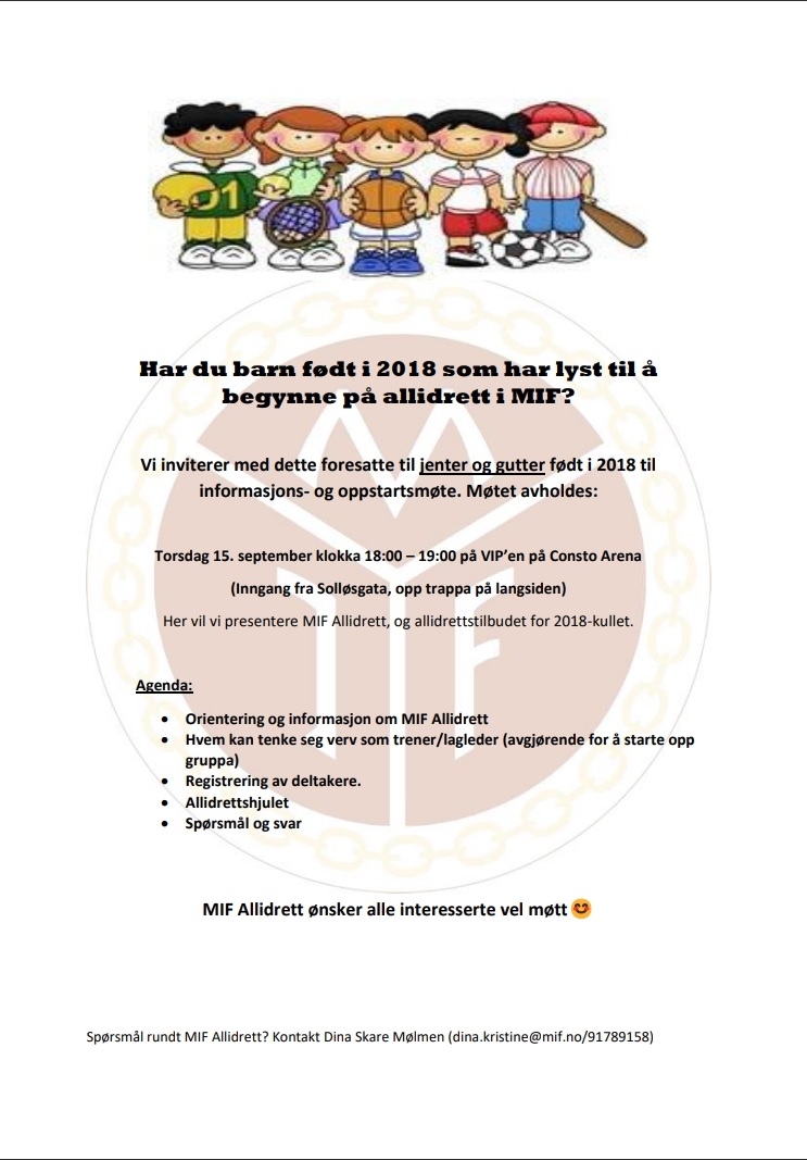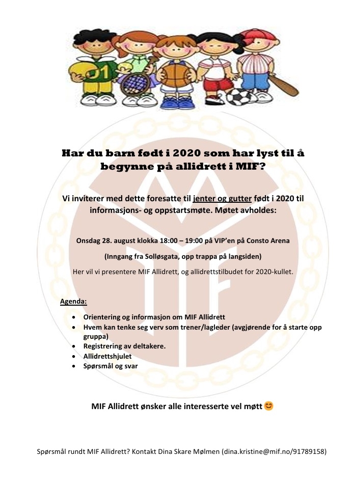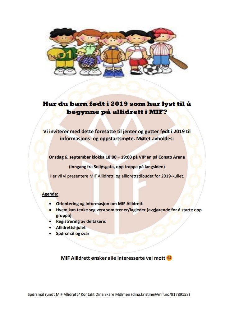 Spørsmål rundt MIF Allidrett kan rettes på mail til sigrunn@mif.no. Se ellers informasjon som ligger under Meny-fanen her på nettsiden.